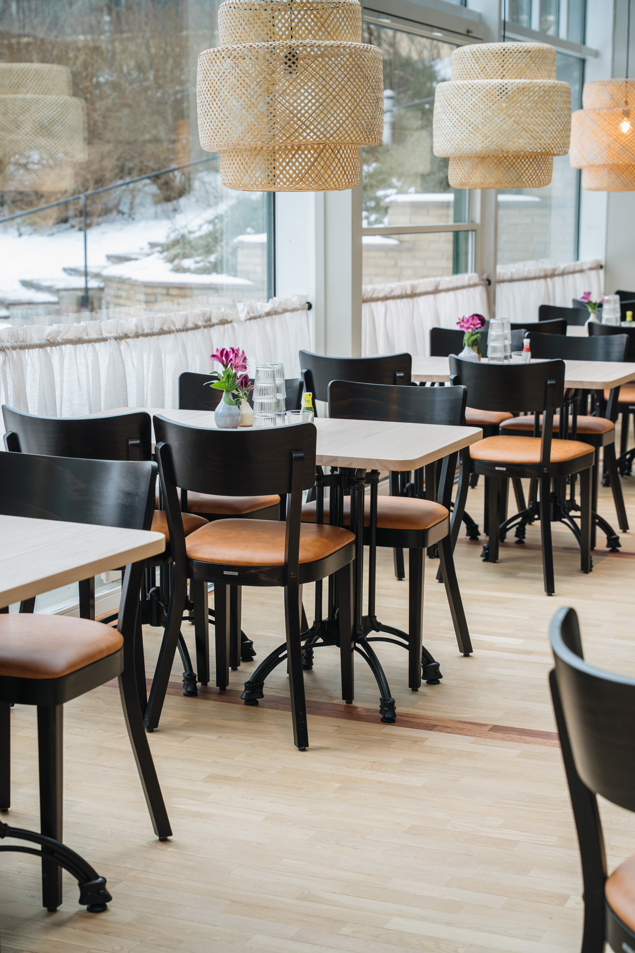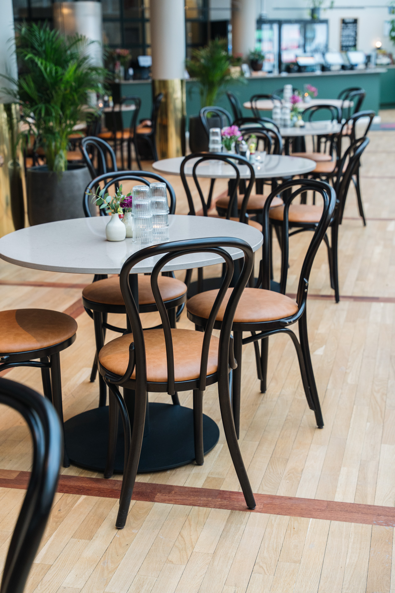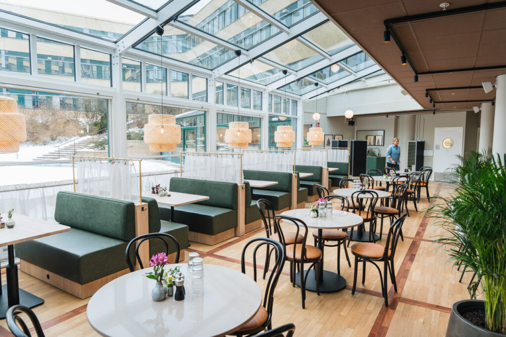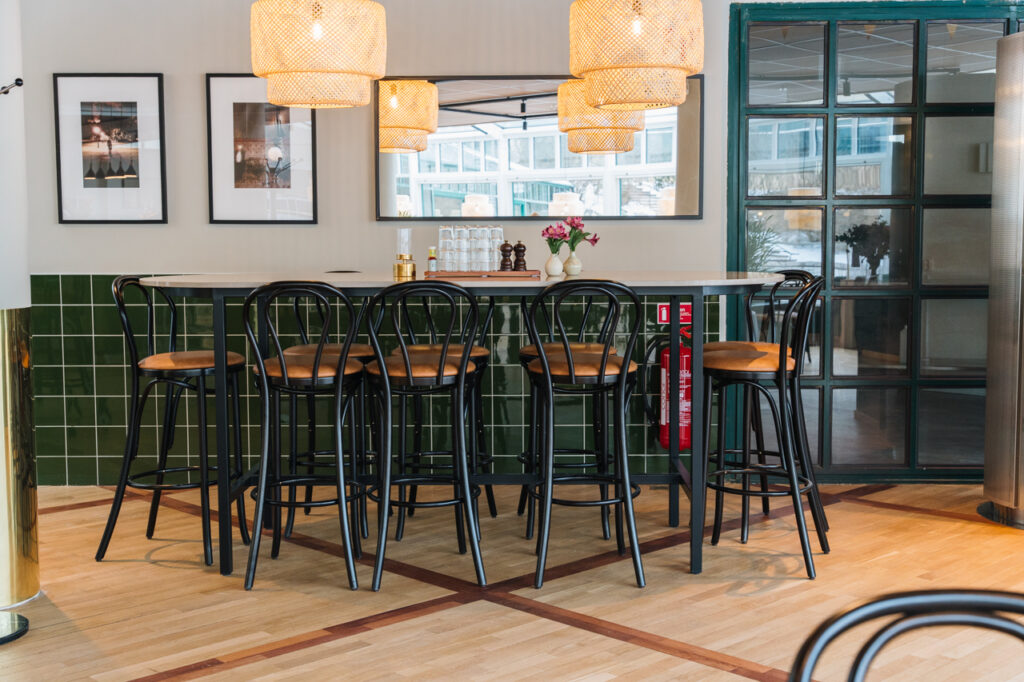 Tiki Blomkvist har erfarenhet av stolar från Satelliet som användes på ett av krogarna hon jobbade förut. De stolarna blev aldrig skrangliga och gick aldrig sönder. När det var dags att inreda Sollentuna Mat kontaktade hon oss, som representerar Satelliet i Sverige, för att skapa inredning med samma kvalitet och hållbarhet.