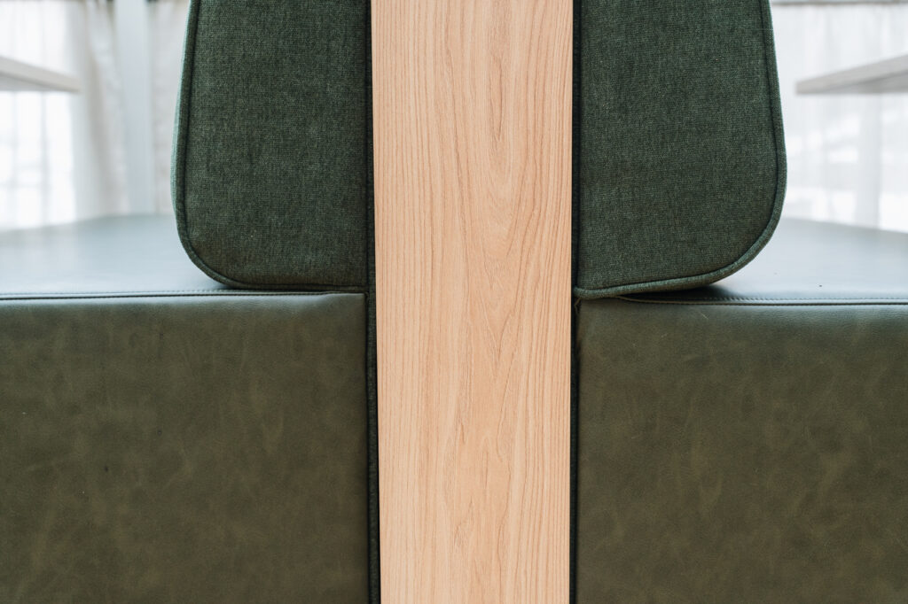 Våra soffbås - de är skräddarsydda för våra behov och därför mobila. Exempelvis om vi ordnar ett bröllop i restaurangen så måste man kunna flytta bort dem enkelt. De går att bära om man är två personer. Det var väldigt, väldigt viktigt att Resize Design kunde få till detta. En härlig och bra lösning för oss.