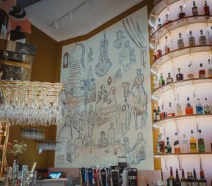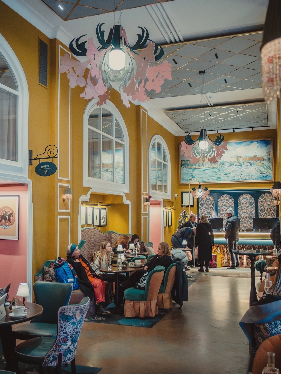 – Vi har alltid haft ett kungligt inslag i vår inredning. Hotellet har anor från 1866 och är uppkallat efter Karl XV. Både kungligheter och kändisar har trivts i våra miljöer under åren, berättar Lina och pekar på teckningar som visar allt från August Strindberg till Greta Garbo.